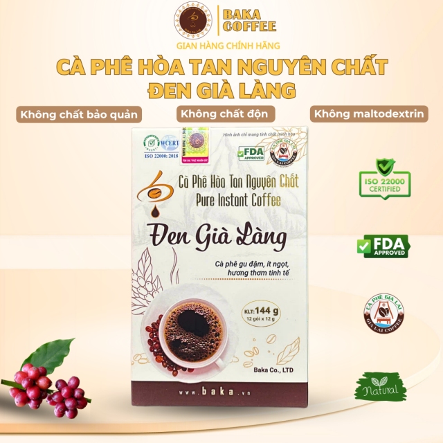 Khi ánh sáng sớm len lỏi qua những rặng núi cao của Gia Lai, sương còn đọng trên từng lá cà phê, và hương đất núi hòa cùng mùi lá xanh tạo nên một nhịp sống bình yên nhưng đầy sức sống. Từ mảnh đất giàu tiềm năng này, cây cà phê không chỉ là sản vật mà còn là sợi dây kết nối con người với thiên nhiên và văn hóa bản địa. Với khát vọng mang hương vị nguyên bản của Gia Lai đến tay khách hàng trong nước và quốc tế, Baka đã tạo ra dòng Cà phê hòa tan nguyên chất Đen Già Làng, chế biến từ tinh chất cà phê nguyên chất, mang đến sự tiện lợi, vị đậm đà, giàu năng lượng và truyền cảm hứng cho mỗi ngày mới. Sản phẩm được sản xuất theo quy trình khép kín đạt chuẩn ISO, HACCP và FDA, không chỉ chất lượng và lành mạnh mà còn kể một câu chuyện riêng: vị đậm đà, ngọt dịu, lưu giữ trọn bản sắc Tây Nguyên và tâm huyết của những người chăm sóc từng hạt cà phê.