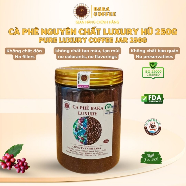 BAKA Luxury Coffee là dòng cà phê cao cấp được tuyển chọn từ những hạt Arabica và Robusta của vùng đất Gia Lai – nơi có thổ nhưỡng bazan màu mỡ và khí hậu đặc trưng của Tây Nguyên. Mỗi hạt được chọn lọc thủ công, rang theo profile chuẩn quốc tế, giúp giữ trọn hương vị tinh khiết và độ ngọt tự nhiên của cà phê nguyên bản.